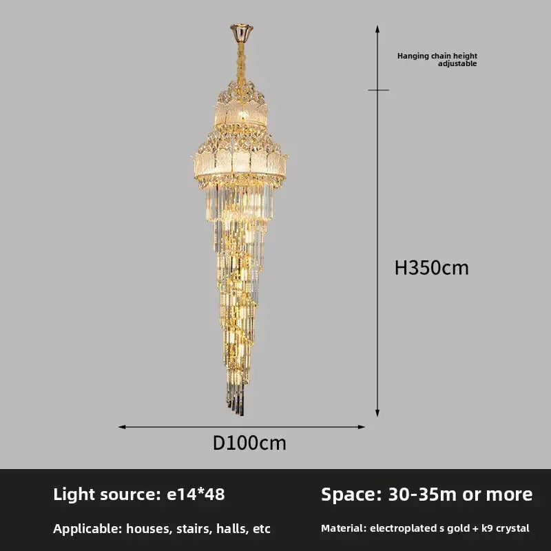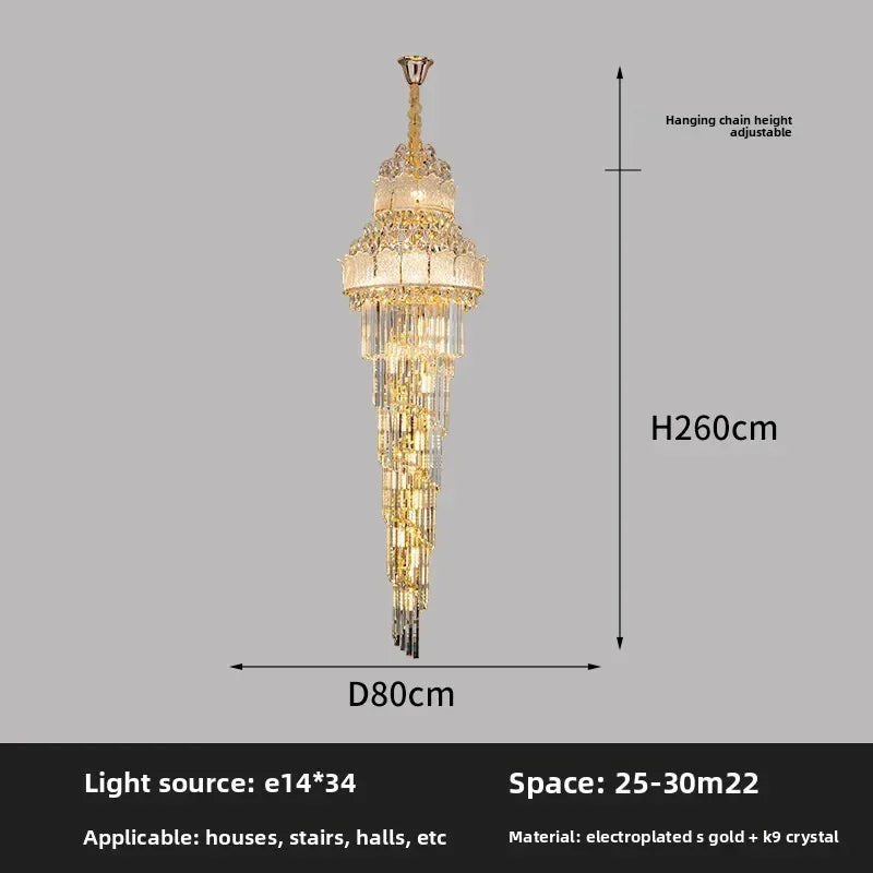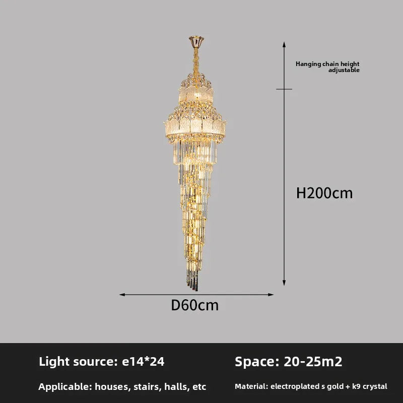 Modern LED Kristallkrona – Trappor, Lobby & Stora Rum, Guld